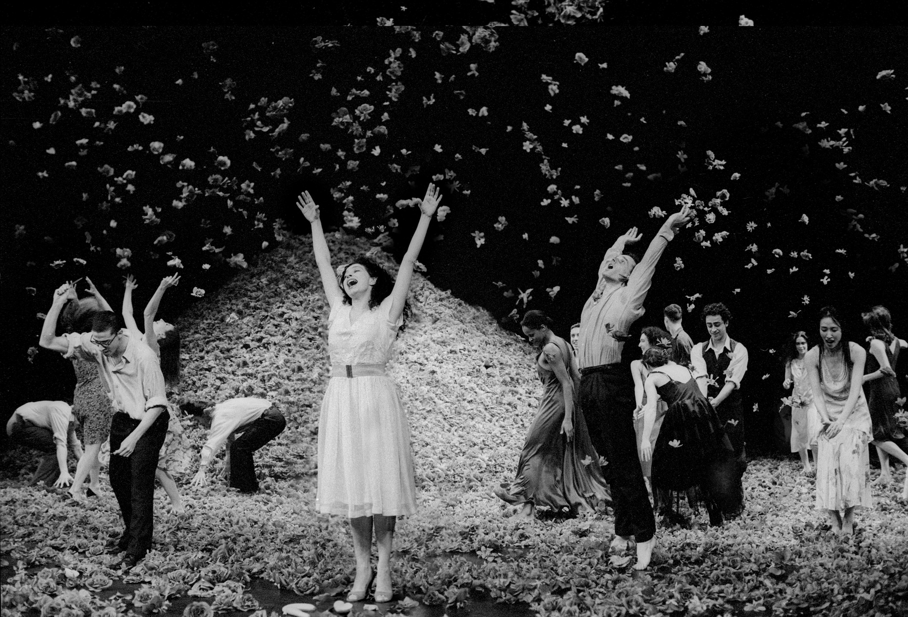 Photographie d'un spectacle de Pina Bausch par Laurent Paillier : danseurs en mouvement dans une ambiance théâtrale Pina Bausch : L'eau, l'air, le feu, la terre, la danse