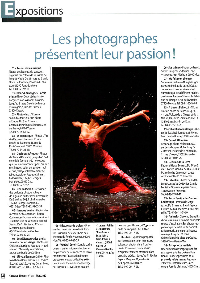 Laurent Paillier, photographe français né à Saint Brieuc, est reconnu pour son travail en photographie de danse contemporaine depuis 1991. Il a collaboré avec de nombreuses compagnies de danse et ses photographies ont été publiées dans des médias prestigieux comme Le Monde, Libération, Le Figaro, L'Express, ou encore The Guardian, The Times...